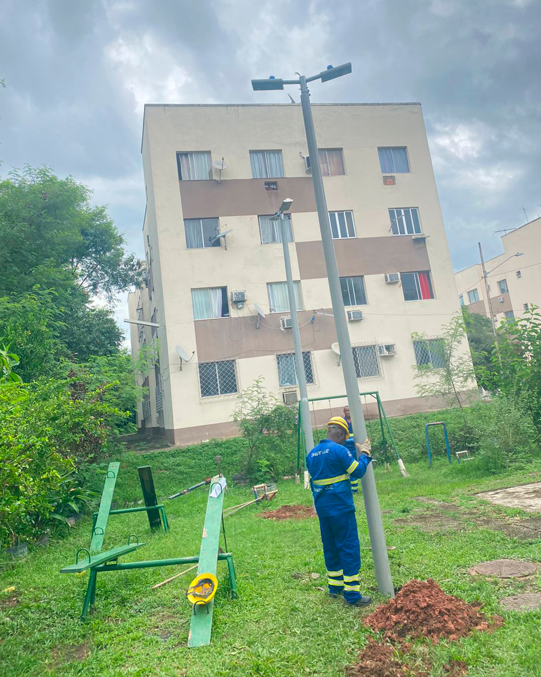 A população do Lote Sete, na Pavuna, tem agora um motivo importante para comemorar. Após muitos anos de espera, a comunidade começou a receber melhorias na iluminação pública da Rua Córrego Rico, especialmente na área da pracinha, um espaço de grande importância para os moradores e para as crianças da região.