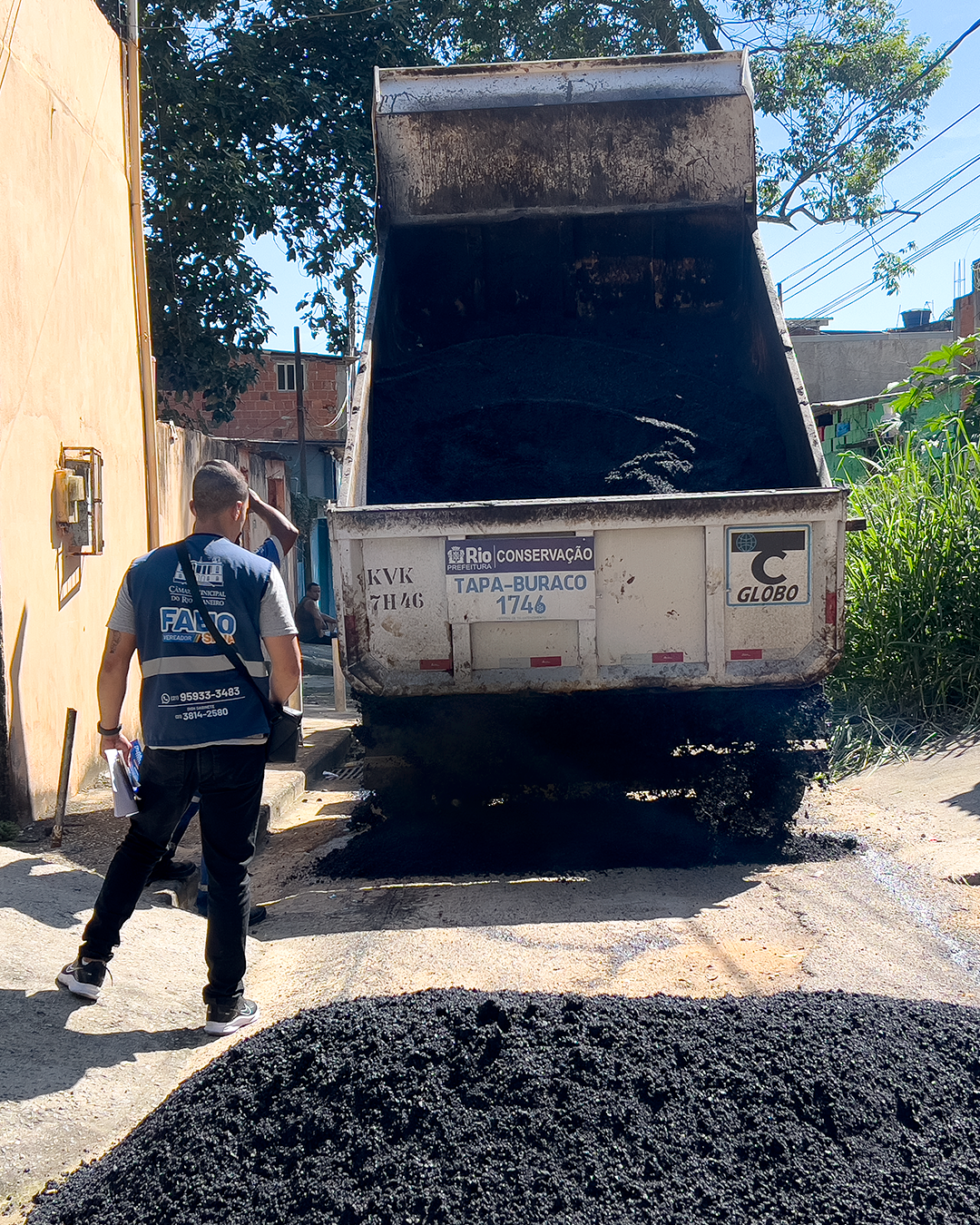 A Prefeitura do Rio realizou, nos últimos dias, a operação de tapa-buracos com aplicação de massa asfáltica em toda a extensão da Travessa Tiradentes, na altura da esquina com a Rua Integração, no bairro de Anchieta.